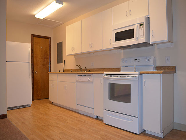 - kitchen cabinets, counter top, 2-tub sink